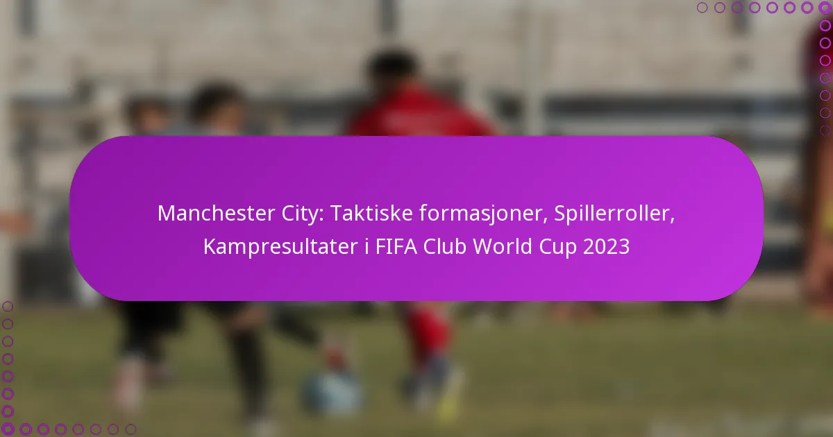 Manchester City: Taktiske formasjoner, Spillerroller, Kampresultater i FIFA Club World Cup 2023