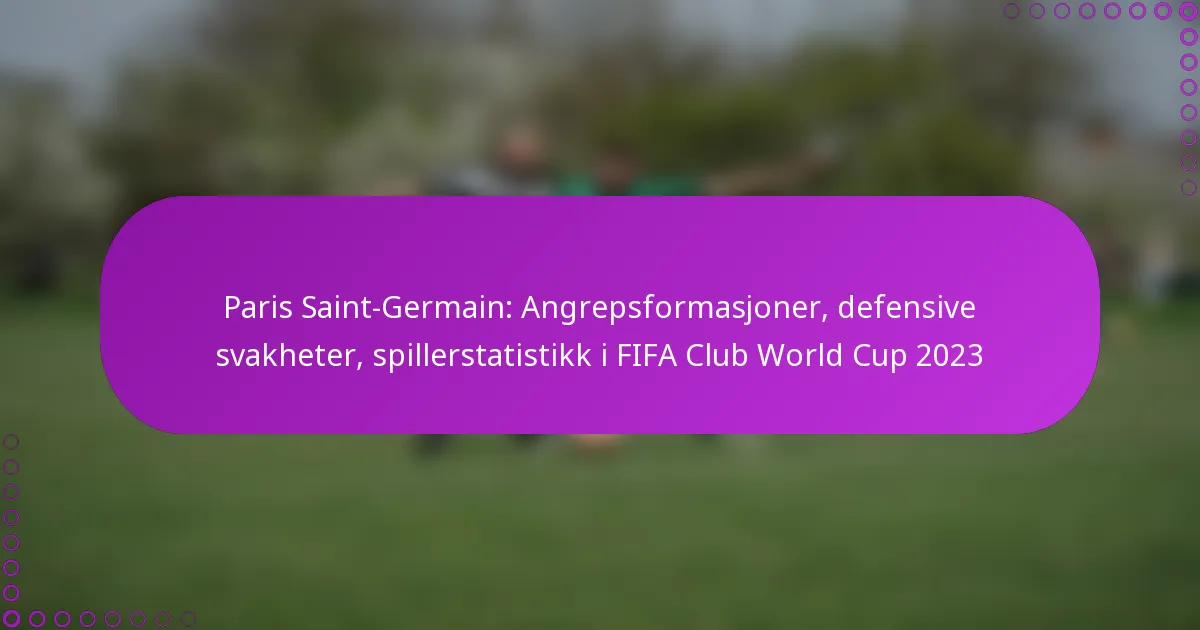 Spillerstatistikker fra FIFA Club World Cup 2023 avslører avgjørende innsikter i Paris Saint-Germains ytelse, og fremhever både deres angrepskraft og defensive sårbarheter. Å analysere disse målingene hjelper med å forstå hvordan individuelle bidrag former kampresultater og lagets samlede suksess.
